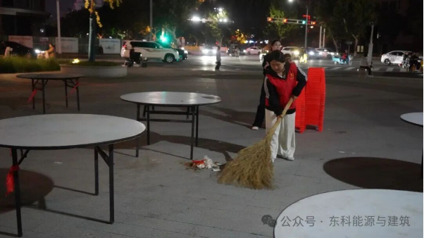 晚会落幕时,夜色已深。孙老师与在场志愿者迅速行动,拿起清扫工具清理场地垃圾,摆放整齐座椅道具。指尖的忙碌里,藏着对活动的用心,更彰显着青年志愿者的责任担当,直到广场恢复整洁,大家才伴着月色离去。