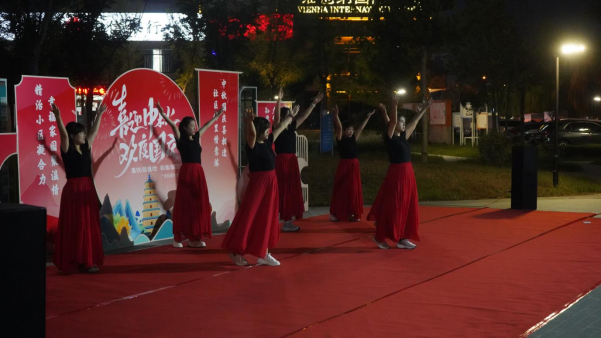 随着欢快的音乐奏响,晚会正式拉开帷幕。社区舞蹈队率先登场,队员们身着靓丽服饰,踏着轻快节拍起舞,灵动的舞姿、饱满的热情瞬间点燃全场气氛,台下掌声随即响起;学院志愿者为社区群众带来了经典老歌演唱环节,引发全场共鸣,熟悉的旋律在广场上空飘荡,居民们不自觉地跟着轻声哼唱,有人轻轻打着节拍,有人眼中泛起回忆的光彩,阵阵喝彩声与掌声交织,将现场氛围一次次推向高潮。晚会尾声,学院志愿者清亮开嗓领唱,全体社区工作人员并肩而立、放声合唱《明天会更好》,熟悉的旋律裹挟着对未来的美好期许在广场上空回荡,晚会也在这满含温情与力量的歌声中圆满落下帷幕。