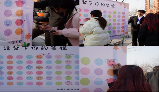 为传递青春正能量,定格校园生活中的美好瞬间,2025年12月30日,能源与建筑学院学习部在教学楼前成功举办“请留下你的笑脸”创意涂鸦活动。随着校园主题展板的正式亮相,这场充满创意与温情的活动圆满落下帷幕。